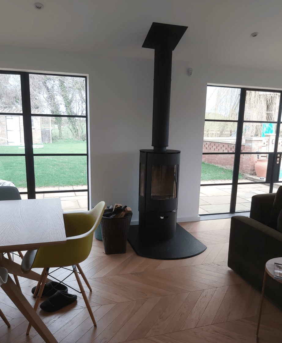 No problem! We install twin wall flue systems. These are built either through your home or up and out to the side of your house. These are made up of double layered insulated, stainless steel metal flue pipes, that transports zero – carbon emissions from wood burning or multi fuel stoves into the atmosphere. The insulating pipes keep the heat from the stove and are 100% safe, protecting your home from the heat of the chimney and helping the chimney to work well, meaning you will get the best efficiency from your stove.